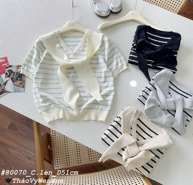 33886- Áo thun khăn choàng nâu sọc đen ngang