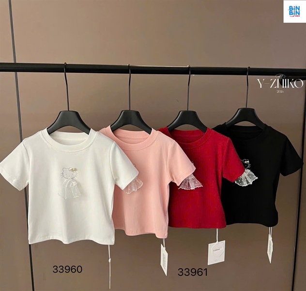 33960- Áo thun trắng Kitty nơ vàng