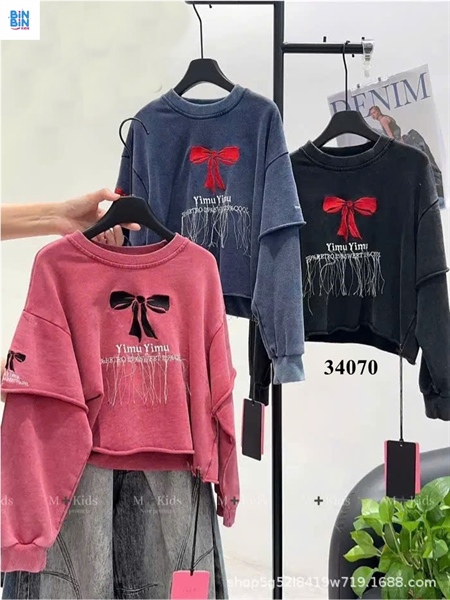 34070- Áo thun TD xám nơ đỏ Yimu M+