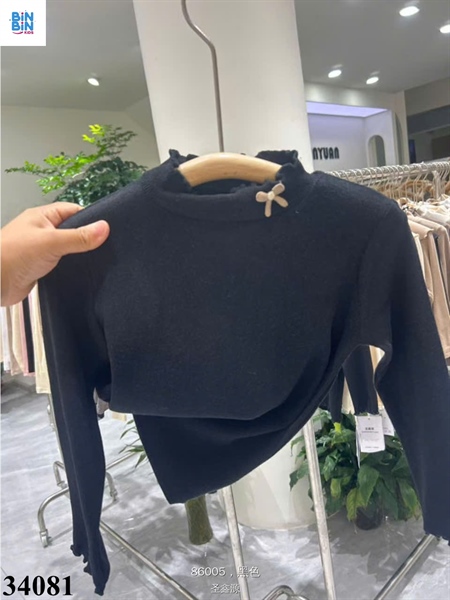 34081- Áo giữ nhiệt đen cổ lọ đính nơ