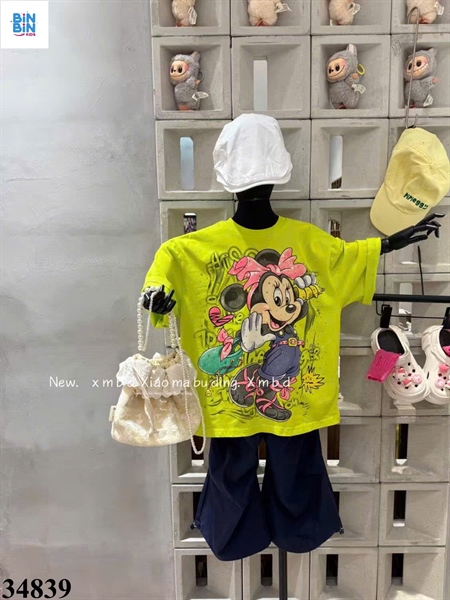 34839- Áo Marthin Mickey đính đá xanh lá