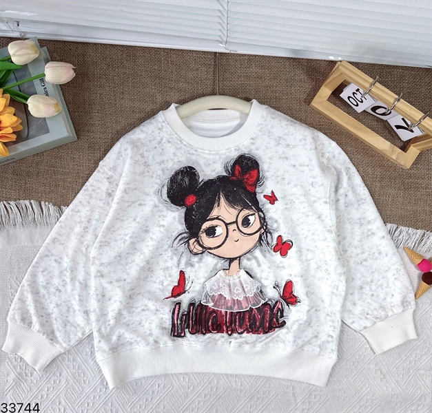 33744-Áo SWT xám cô bé mang kính in bướm