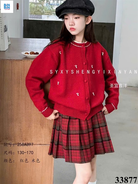 33877-Set váy 3ct len nấm caro đỏ