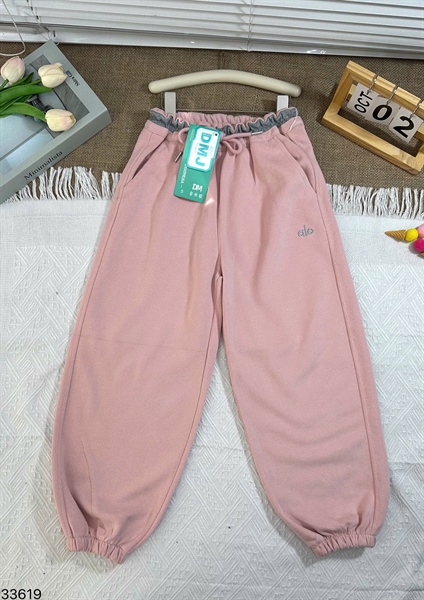 33619- Quần nỉ jogge hồng sườn phối màu thêu Alo