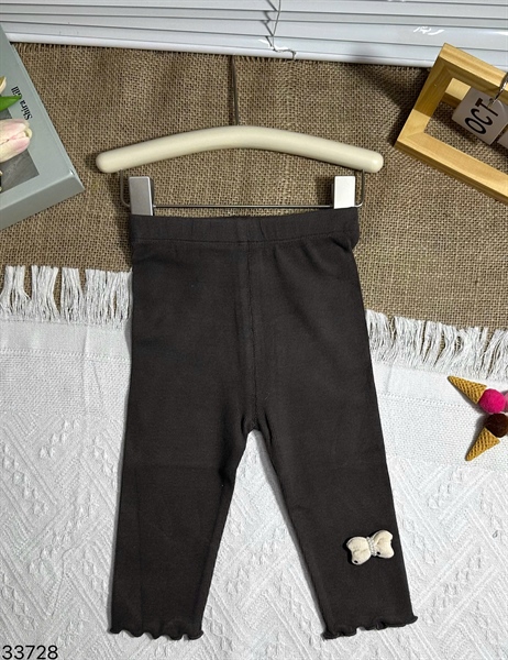 33728- Quần Legging Đính nơ ngọc 2 chấm xám chuột